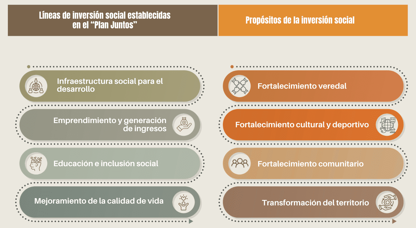 Los criterios para definir todos los proyectos de “Juntos” se caracterizan por ser incluyentes, respetando la organización, autonomía y procesos de cada Junta de Acción comunal. Además fortalece el relacionamiento y los lazos entre los diferentes actores de la región: comunidad, Juntas de Acción Comunal, autoridades y SierraCol Energy.